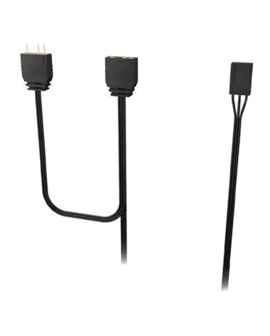 Para poder conectarlo, X-FAN cuenta con un conector de corriente de 3 pines. Además, incorpora un conector ARGB macho de 3 pines para poder sumar más ventiladores en serie para multiplicar el caudal de aire a todo color.